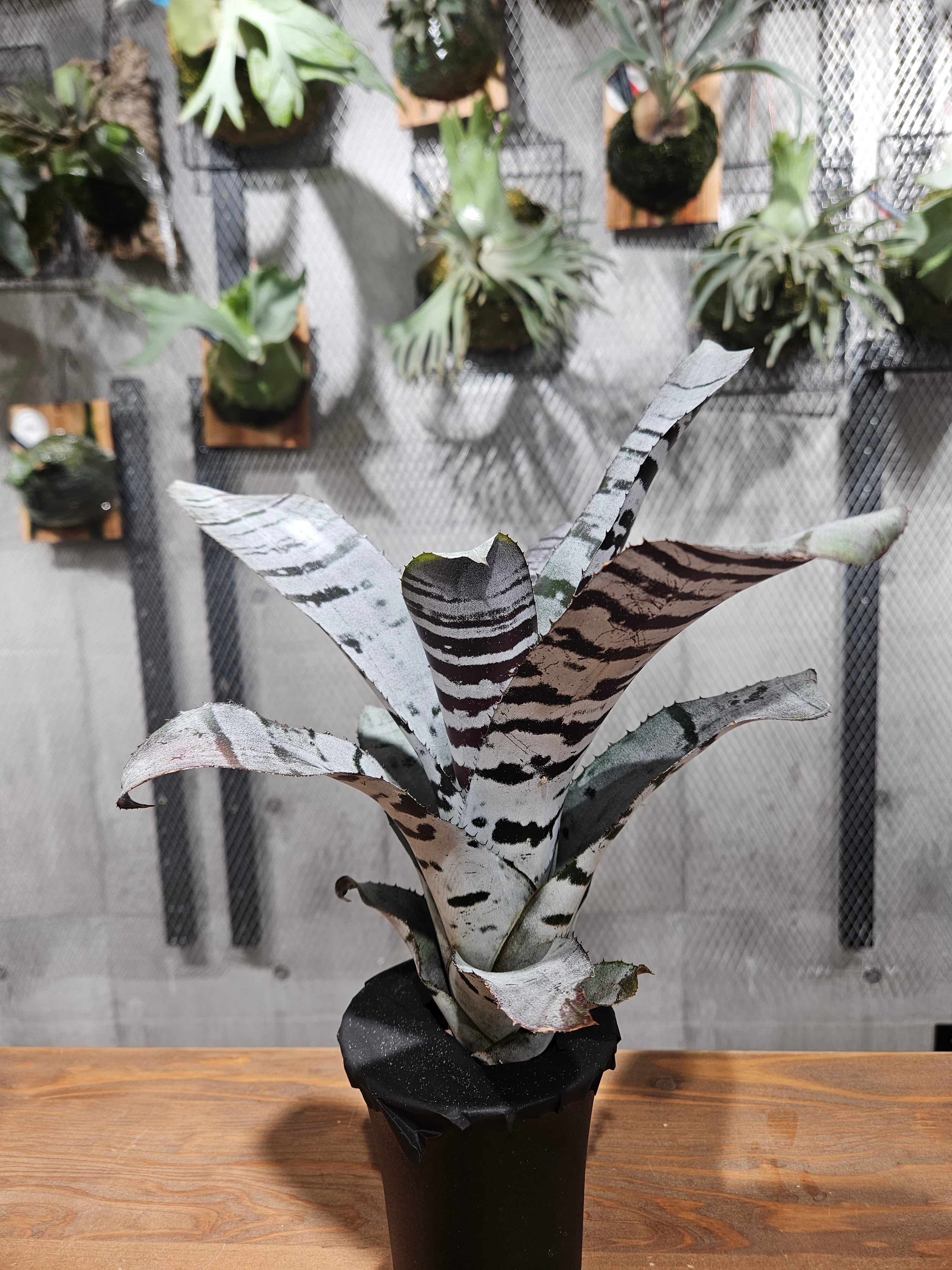 Aechmea chantinii Black Iceは、その個性的な美しさで多くのファンを魅了しています!独特の黒い葉と銀色の斑点が織り成すコントラストは、どんなインテリアにも調和し、エレガントな雰囲気を演出します。タンクブロメリアの中でも特に注目されているこの品種は、育てる楽しみとともに、観賞用としても非常に優れた植物です。初心者の方でも簡単に育てられるので、ぜひこの機会にお迎えしてみてください!