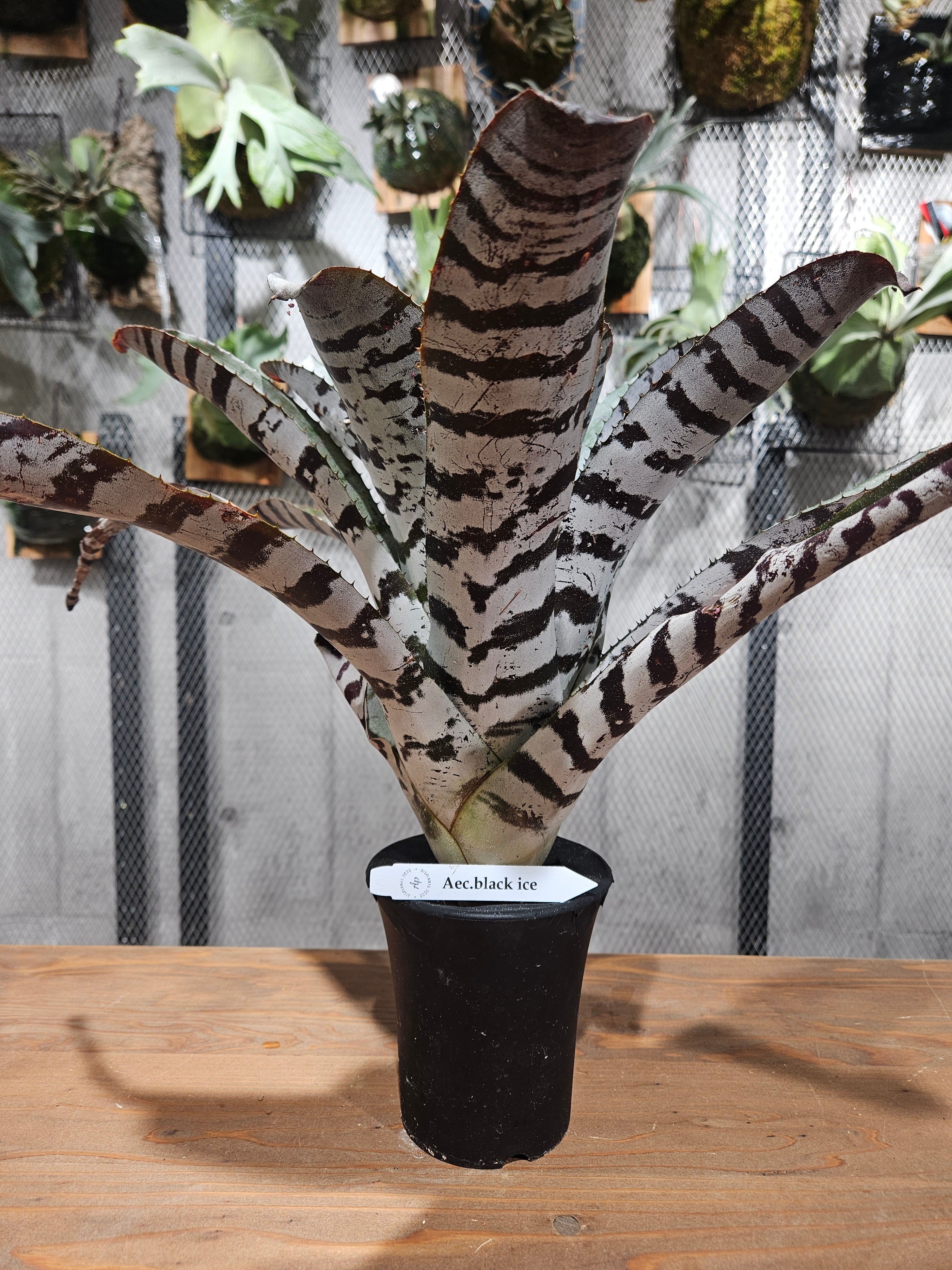 Aechmea chantinii Black Iceは、その美しい黒い葉と銀色の斑点によって、見る人すべてを魅了するユニークなタンクブロメリアです!この植物は、どんなインテリアにもエレガントなアクセントを加え、育てる楽しさも体験させてくれる特別な存在です。初心者の方でも手軽に育てられるため、インテリアグリーンとしてぜひ手に入れたくなる逸品です。あなたのライフスタイルにピッタリのこのエクメアを、ぜひお迎えしてみませんか?